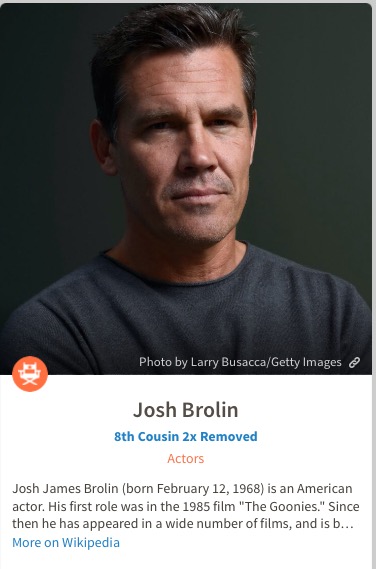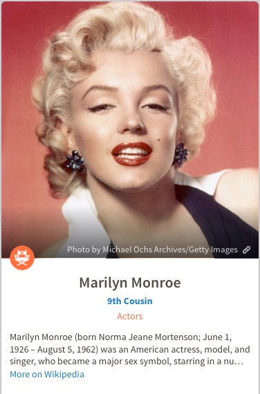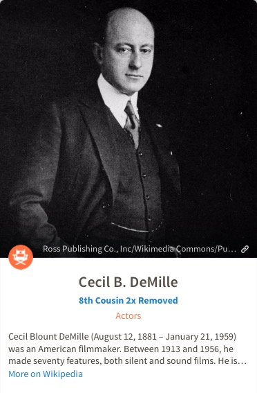 Since I first wrote about my matches on Ancestry’s new app (click here), I’ve had a two more pop up, both in the Actors category: