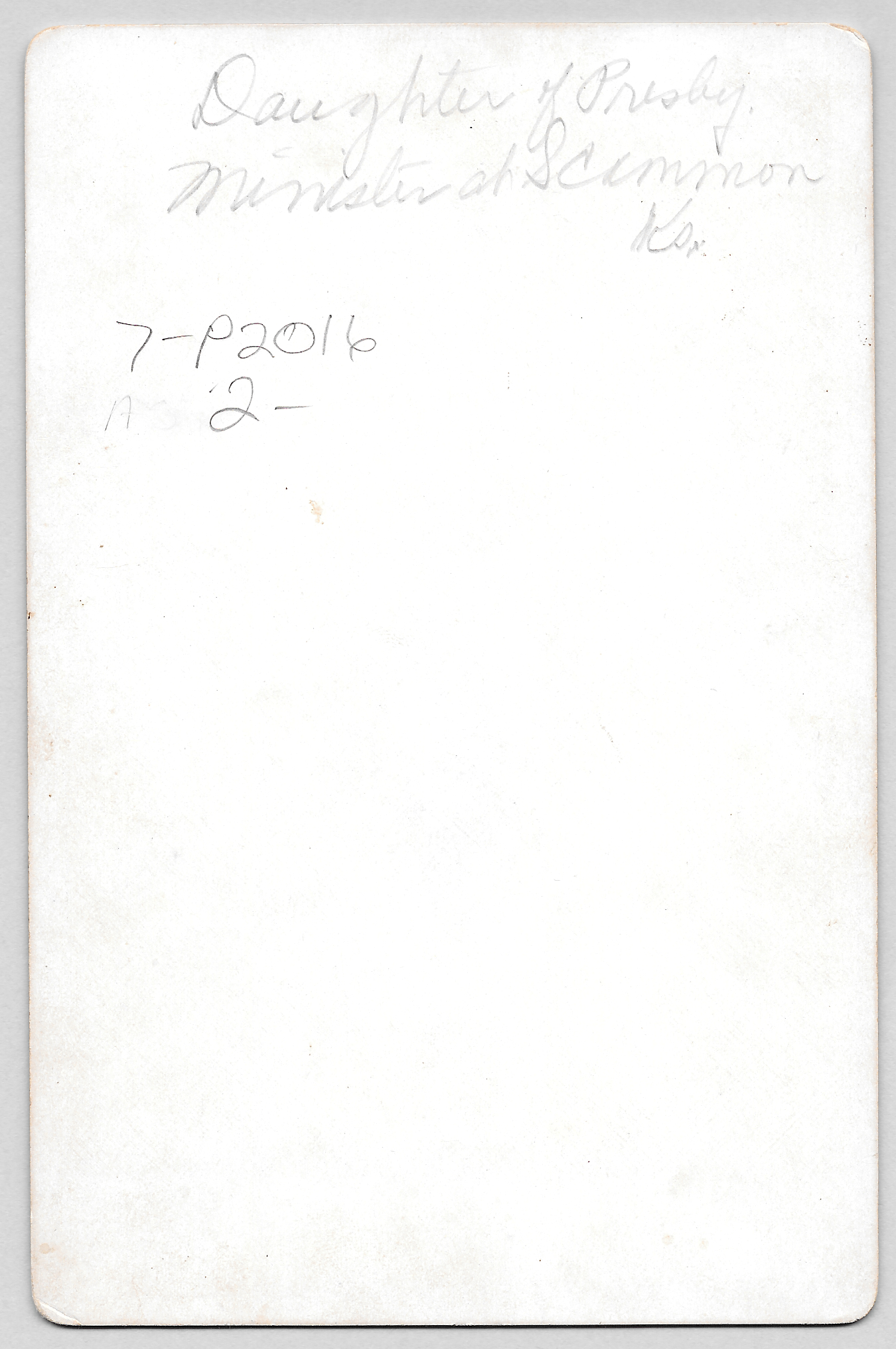 “Daughter of Presby. Minister at Scammon Ks.”