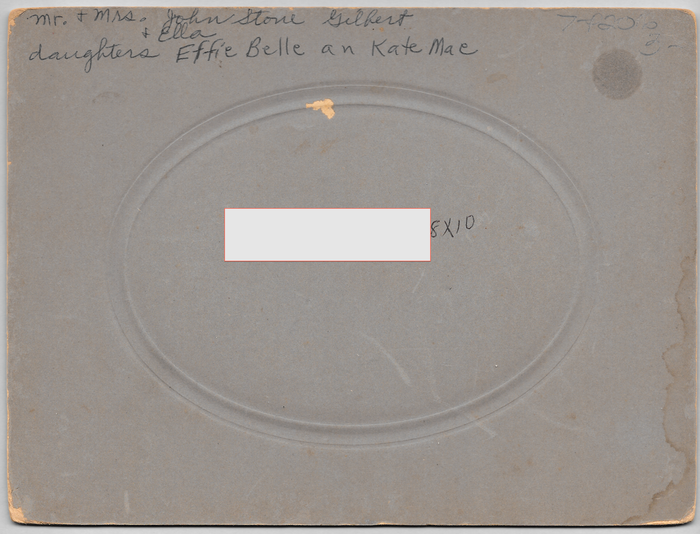“Mr. & Mrs. (Ella) John Stone Gilbert | daughters Effie Belle and Kate Mae”
